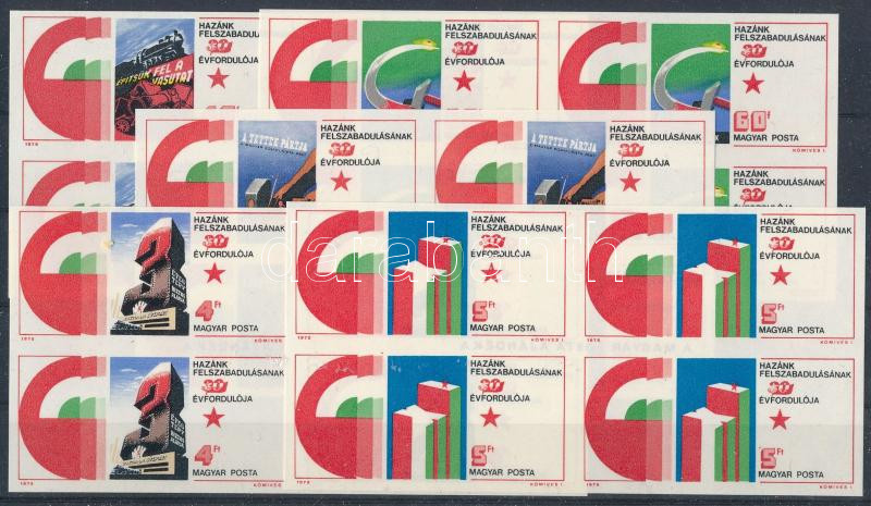 1975 Felszabadulás ajándék vágott négyestömbök (30.000) / Mi 3026-3030 imperforate blocks of 4, present of the post (Image)(Image 1)