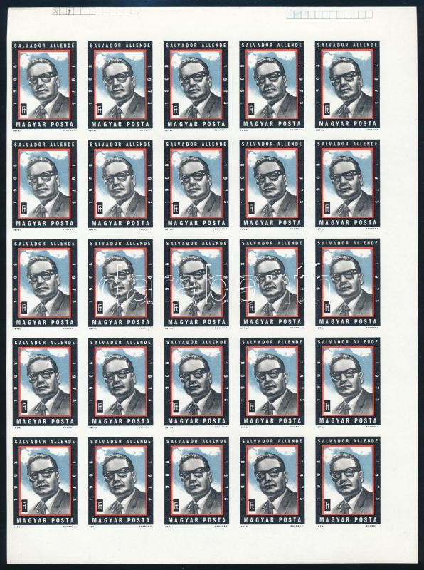 1974 Salvador Allende vágott 25-ös félív (30.000) / Mi 2939 imperforate half sheet of 25 (Image)(Image 1)