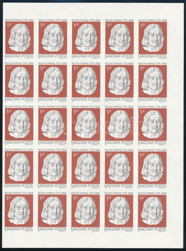 1975 Bolyai Farkas vágott félív (35.000) / Mi 3021 imperforated block of 25 (Image)(Image 1)