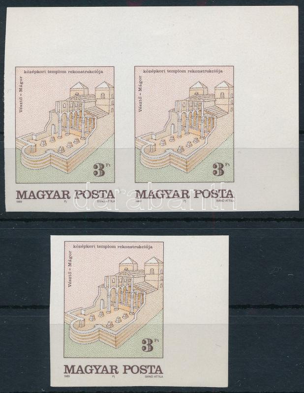 1989 Történelmi emlékhelyeink 3 db vágott bélyeg / imperforate stamps (Image)(Image 1)