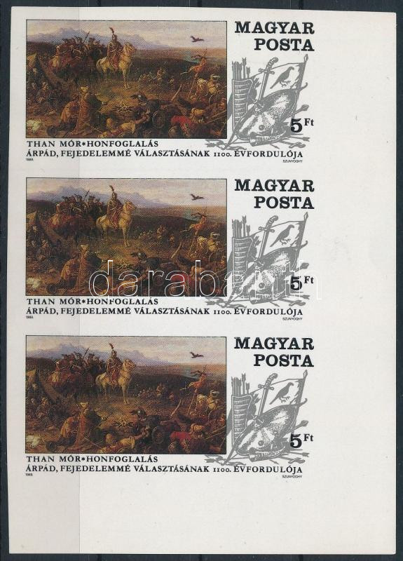1989 Árpád fejedelemmé választásának 1100. évfordulója vágott ívsarki hármascsík (Image)(Image 1)
