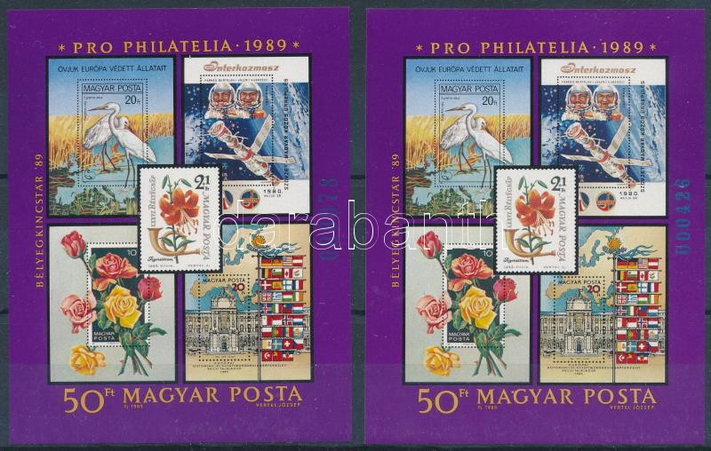 1989 Pro Philatelia 2 db blokk magasabb és alacsonyabb zöld sorszámmal / Mi 203 2 blocks with green, taller and shorter serial number (35.000)