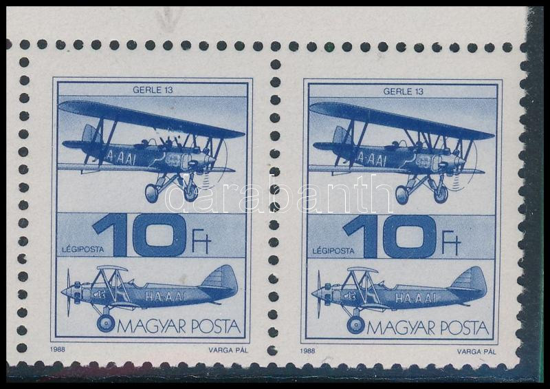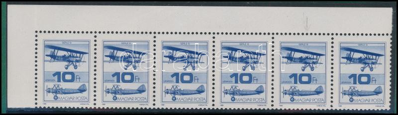 1988 Repüléstörténet 10Ft ívsarki hatostömb "törött szárnytartó" lemezhibával / Mi 3987 in stripe of 6 with plate variety (Image)(Image 1)