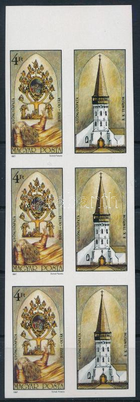 1987 Gyöngyöspatai Jessze-oltár ívszéli vágott hatostömb / imperforate margin block of 6 (Image)(Image 1)