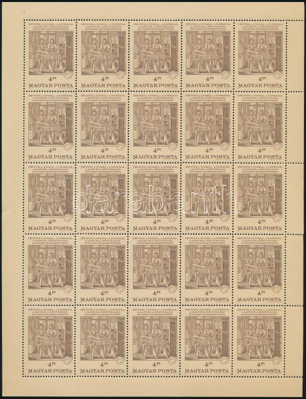 1987 125 éves a Nyomda-, a papíripar, a sajtó és a könyvkiadás dolgozóinak szakszervezete teljes ív (elvált fogak / aparted perfs) (Image)(Image 1)