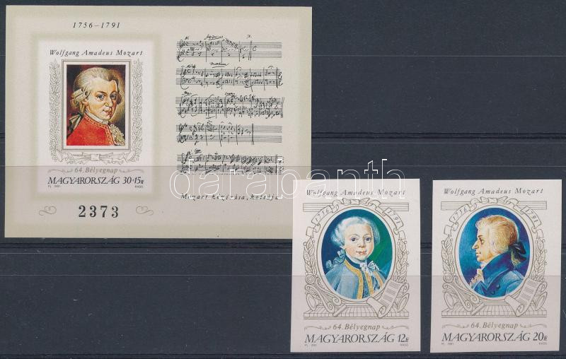 1991 Bélyegnap (64.) Mozart vágott sor + vágott blokk (35.000) / Mi 4158-4159 imperforated set + Mi 216 imperforated block (Image)(Image 1)