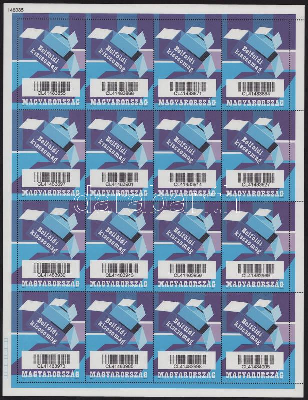 1998 Belföldi kiscsomag bélyeg középen hajtott teljes ív (250.000) / Parcel stamp Mi 1 folded complete sheet (Image)(Image 1)
