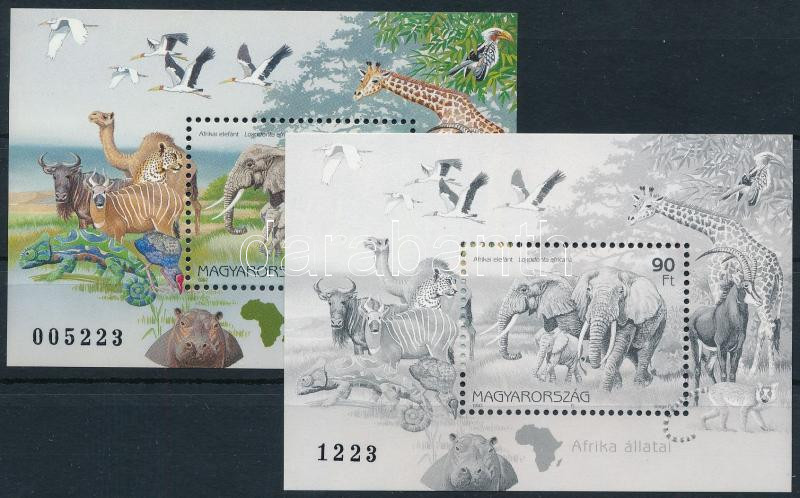 1997 Földrészek állatai normál és feketenyomat blokk fekete sorszámmal / Mi block 242 + blackprint with black number (Image)(Image 1)