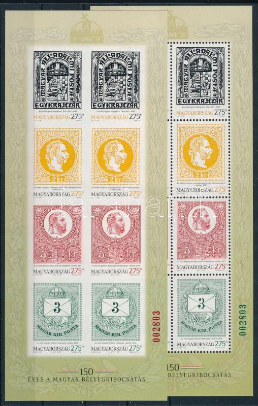 2017 150 éves a magyar bélyegkibocsátás fogazott és vágott kisív azonos sorszámmal / Mi 5903-5906 perforate and imperforate mini sheet with same number