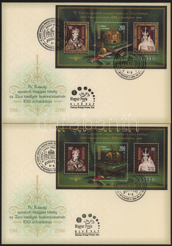2016 IV. Károly és Zita normál és speciális dombornyomott blokk 2 db FDC-n / Mi block 391 I + II on 2 FDC (Image)(Image 1)