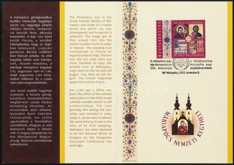2015 A máriapócsi kegykép könnyezésének 300. évfordulója ritka emléklap / souvenir card, rare (Image)(Image 1)