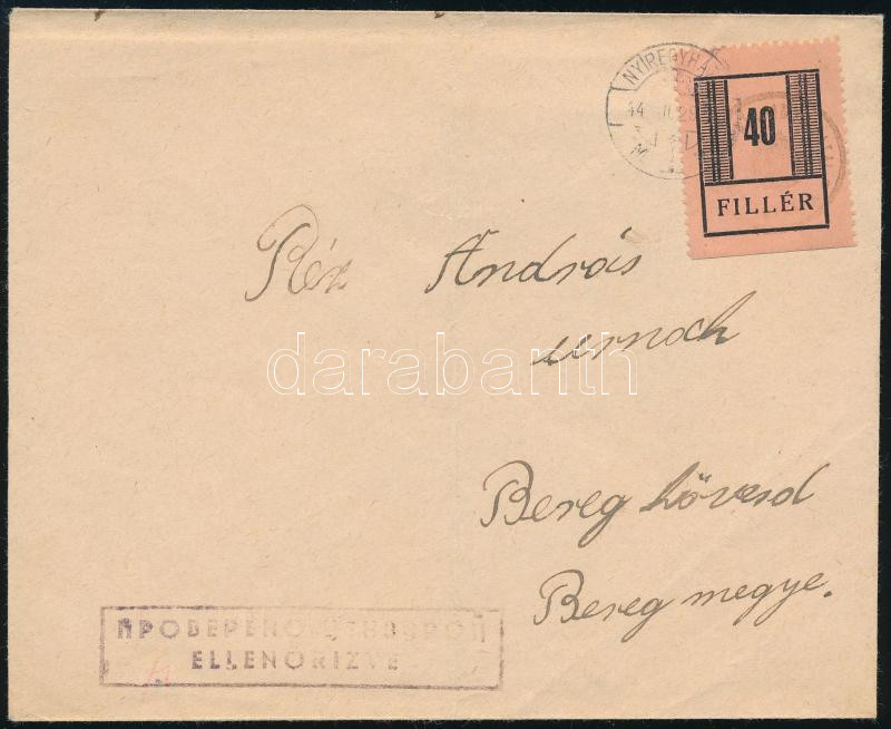 Nyíregyháza II. 1945 40f felülnyomott bélyeg április 16-ai felhasználású levélen, cenzúrázva / 40f on censored cover Signed: Leitold (Image)(Image 1)