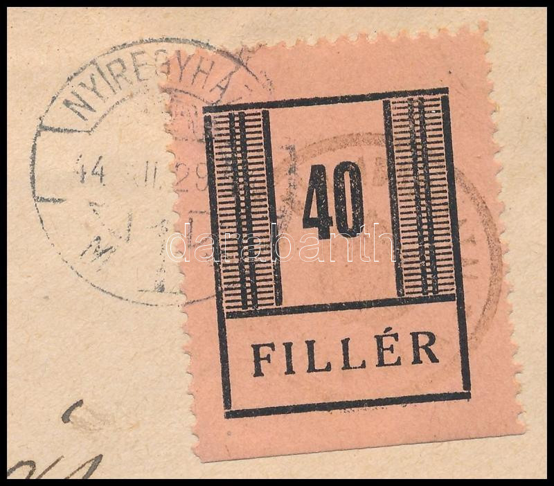 Nyíregyháza I. 1944 40f korai felhasználású (december 29.) levélen, cenzúrázva / 40f on early used censored cover Signed: Leitold (Image)(Image 1)