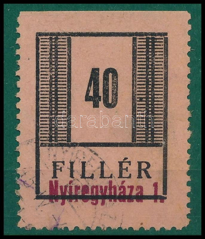 Nyíregyháza II. 1945 40f felülnyomott bélyeg Signed: Leitold, Flasch (Image)(Image 1)