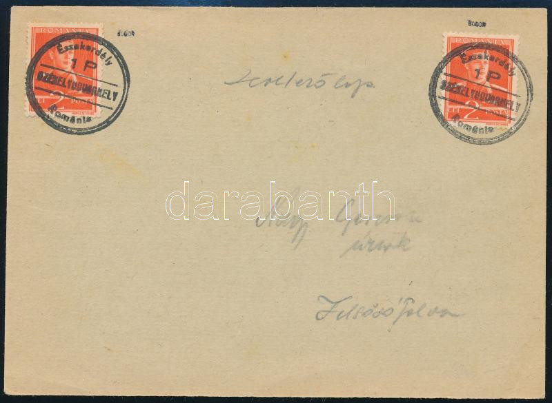 Székelyudvarhely 1945 Futott levél 2 db bélyeggel / Cover with 2 stamps Signed: Bodor (Image)(Image 1)