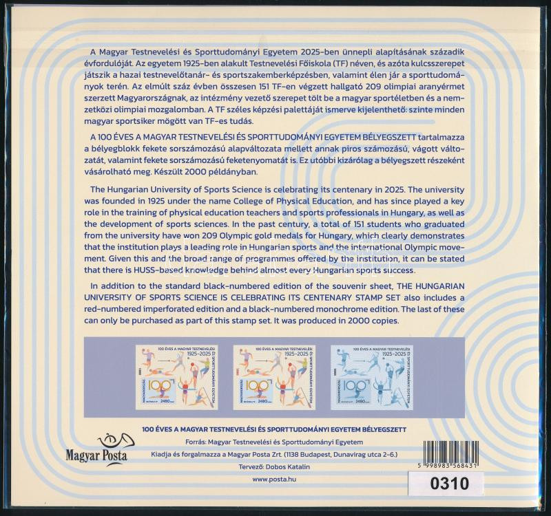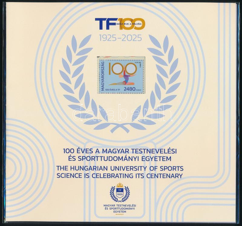 2025 Testnevelési Egyetem bélyegszett benne fogazott, vágott és feketenyomat blokk / Sports University block perforated, imperforate and blackprint in presentation pack (Image)(Image 1)