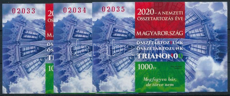 2020 Nemzeti összetartozás 3 db vágott blokk, sorszámkövetőek / 3 x Mi block 443 B (Image)(Image 1)