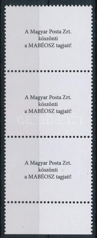 2024 Bélyegnap (97.) - Sárvár 255Ft ívszéli függőleges 3-as csík hátoldalán "A Magyar Posta Zrt. köszönti a MABÉOSZ tagjait" felirattal. Összefüggésben ritka!! (18.000) / Mi 6385 margin stripe of 3, present of the post (Image)(Image 1)