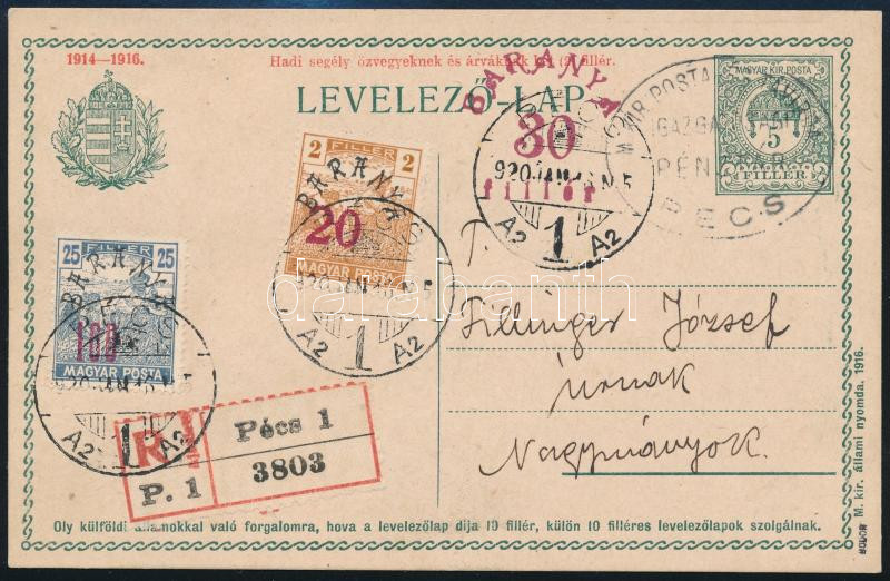 Debrecen I. 1919 Postatakarék piros felülnyomással / Mi 6a Signed: Bodor (Image)(Image 1)
