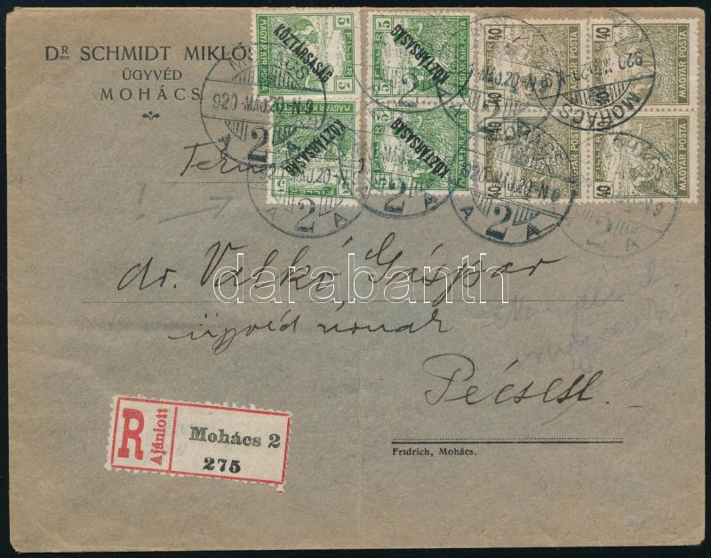 Debrecen I. 1919 Arató 2f négyestömb elcsúszott felülnyomással / Mi 14 block of 4 with shifted overprint Signed: Bodor (Image)(Image 1)