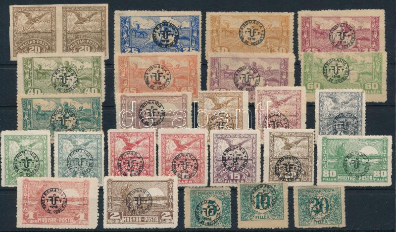 Debrecen II. 1920 20f gumi nélküli vágott pár (ráncok / creases), 9 klf bélyeg közönséges papíron, 12 db bélyeg fényes papíron (1 x 10f postatiszta / MNH), 3 klf portó, mindegyik bélyeg Bodor vizsgálójellel (Image)(Image 1)