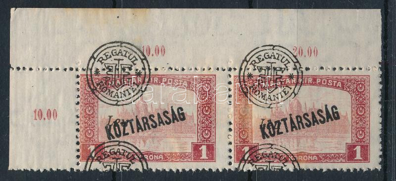 Nagyvárad 1919 Parlament/Köztársaság 1K elcsúszott felülnyomással (foltok / spots) Signed: Bodor (Image)(Image 1)