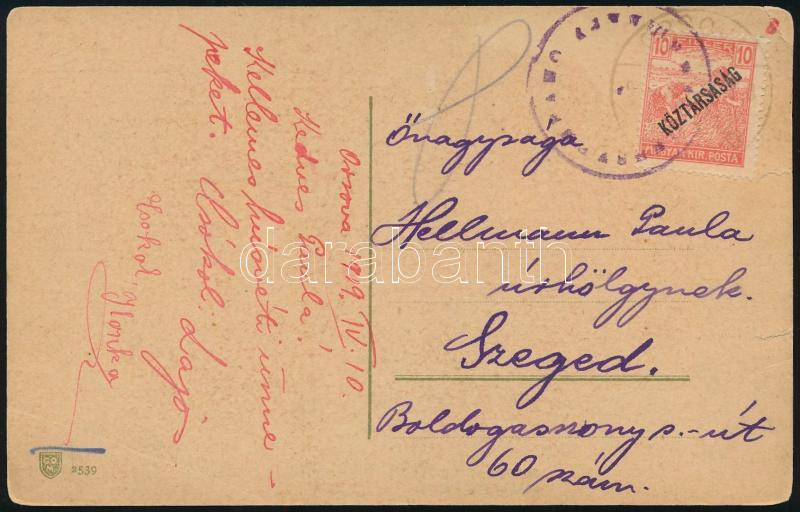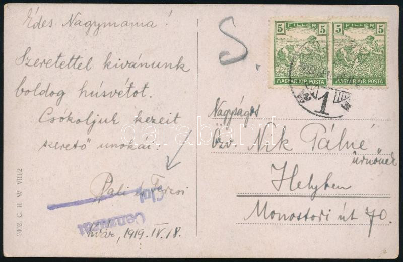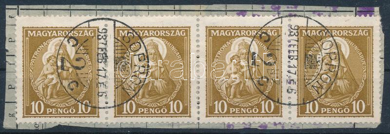 Nagy Madonna 10P 4-es csík sommás szállítólevél darabon luxus minőség R! kiállítási darab / Mi 487 stip of 4 on parcel card piece "SOPRON" (Image)(Image 1)
