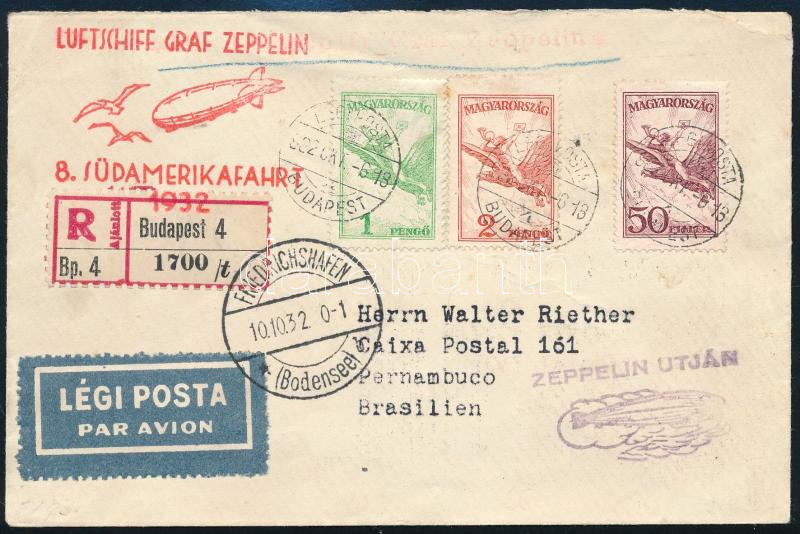 1932.10.06. Zeppelin 8. Südamerikafahrt levél 1927. Repülő bérmentesítéssel Braziliába / Cover to Pernambuco (Image)(Image 1)