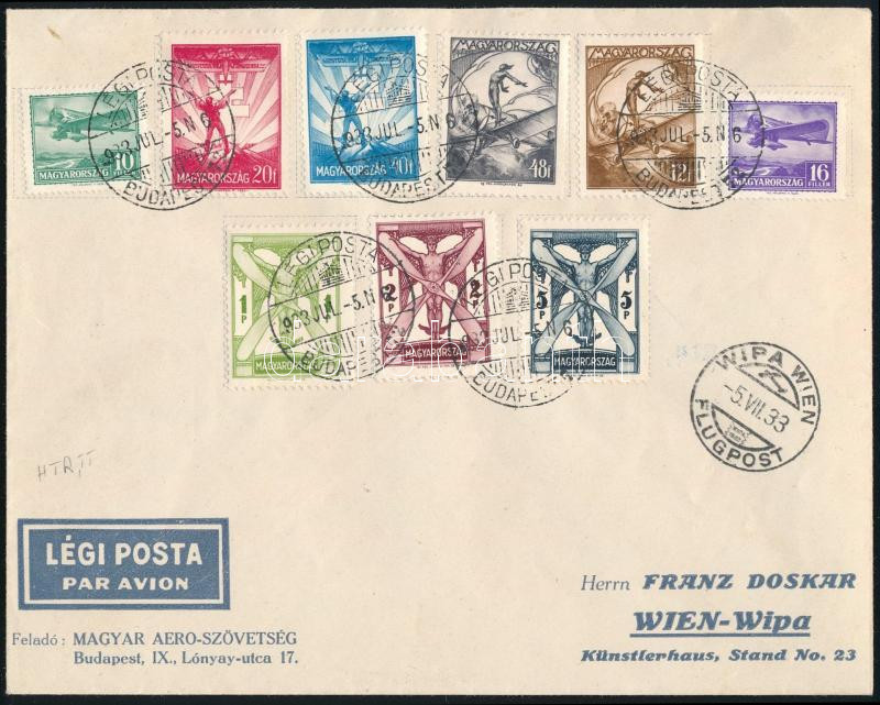Repülő II. sor légi levélen a WIPA világkiállításra küldve, "BUDAPEST" - "WIPA WIEN" / Airmail cover with Mi 502-510 set sent to the WIPA World Exhibition, "BUDAPEST" - "WIPA WIEN" (Image)(Image 1)