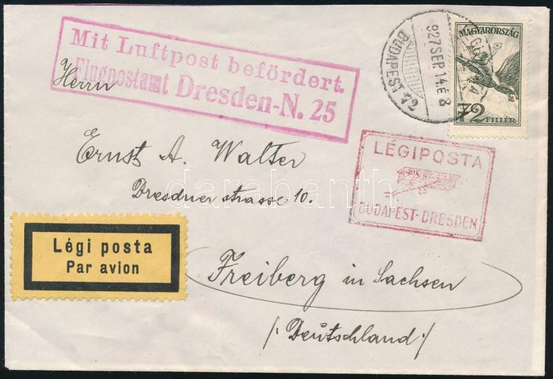 Légi levél piros "BUDAPEST-DRESDEN" irányítóbélyegzéssel / Airmail cover with red "BUDAPEST-DRESDEN" postmark (Image)(Image 1)