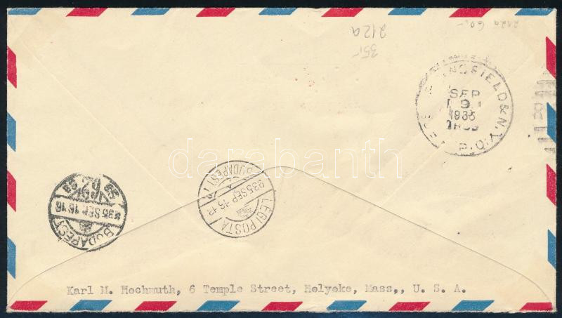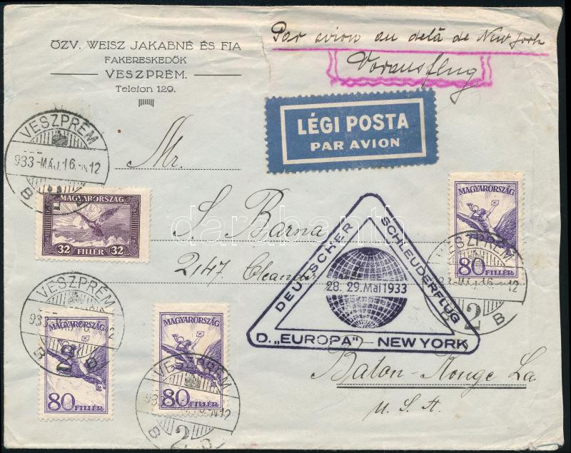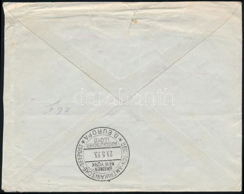 Katapult levél 2,32P bérmentesítéssel Budapestről a Dampfer Europa hajóval az Egyesült Államokba. Rendkívül ritka! RRR! / Catapult cover sent by the ship Dampfer Europa from Budapest to the US very rare! (Image)(Image 1)