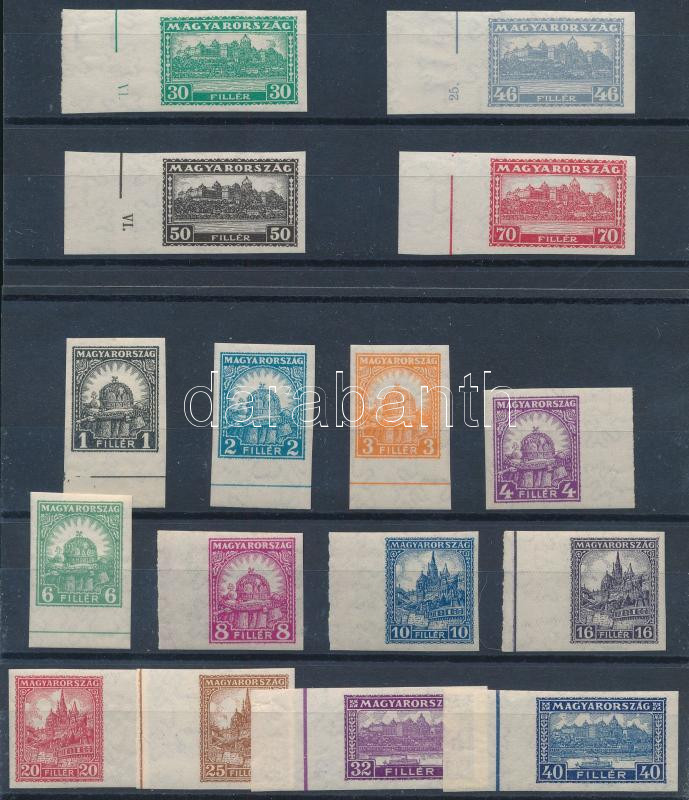 1926 Pengő-fillér I. vágott ívszéli sor (110.000) / Mi 411-426 imperforated margin set (Image)(Image 1)