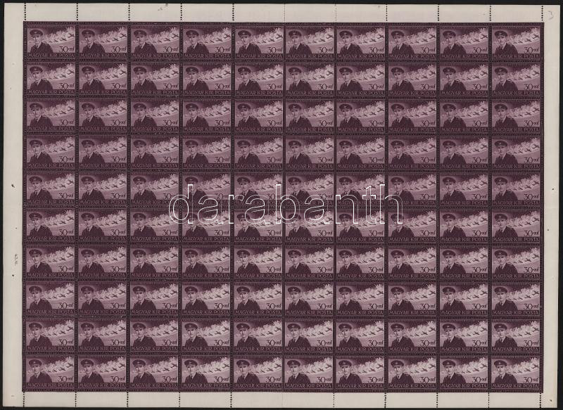 1943 Repülő alap hajtott teljes ív, a 11. ívhelyen lemezhibával / Mi 735 folded complete sheet with plate variety (Image)(Image 1)