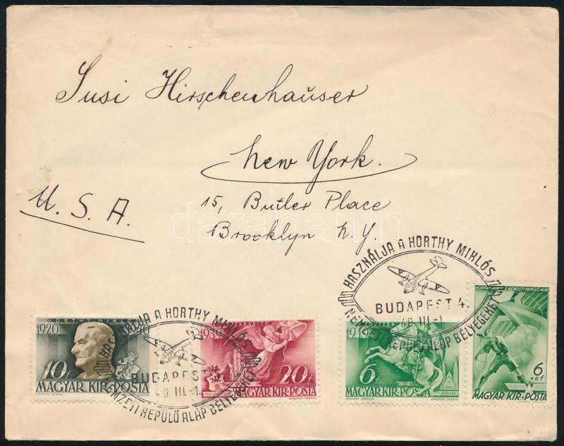 1940 Kormányzói 20 éves évforduló sor FDC-n New Yorkba / Mi 626-628 on FDC to New York (Image)(Image 1)