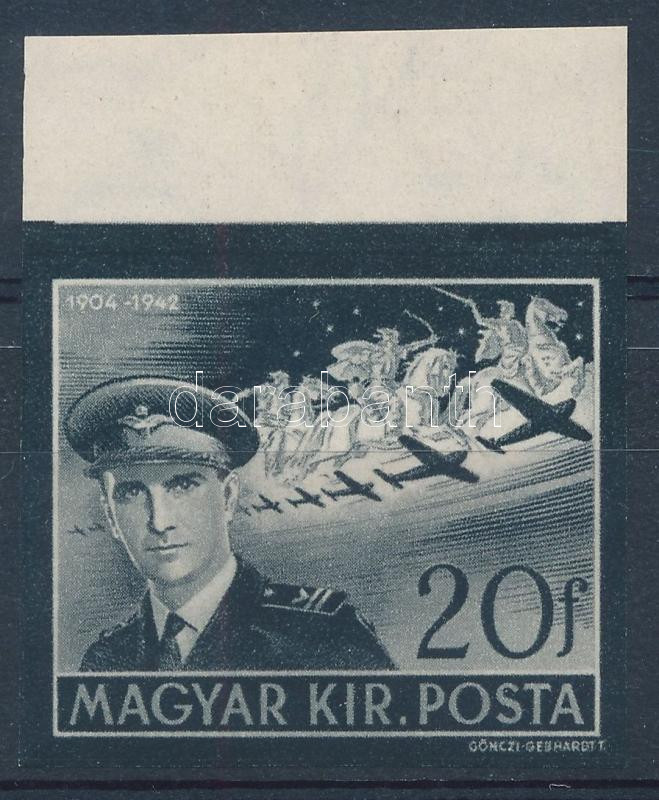1942 Kormányzóhelyettesi gyász vágott ívszéli bélyeg (20.000) / Mi 695 imperforated margin stamp (Image)(Image 1)