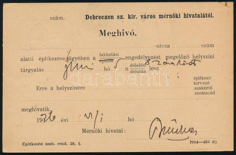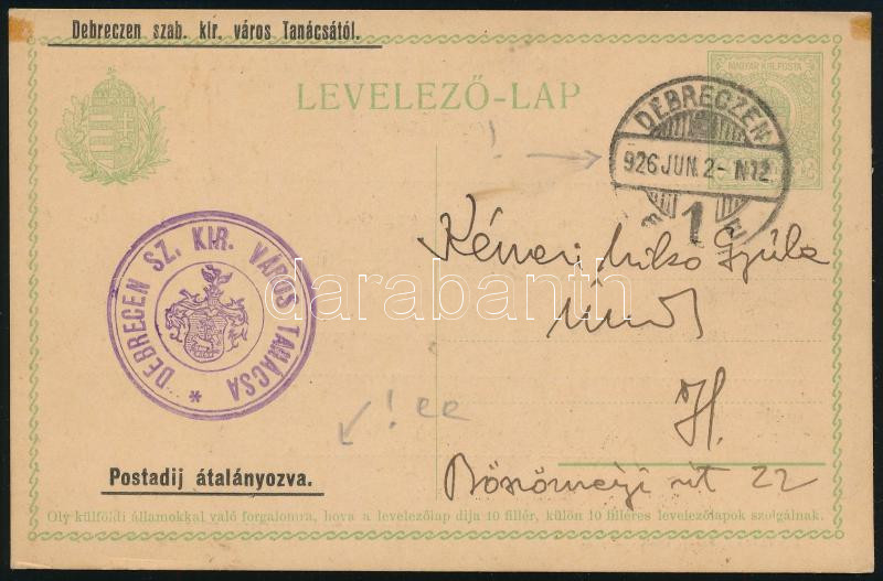 1926 Debrecen helyi nyomtatvány postadíj átalányozva / Local printed matter (Image)(Image 1)