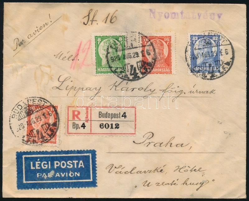 1928 Ajánlott légi levél Prágába / Registered airmail cover to Prague (Image)(Image 1)