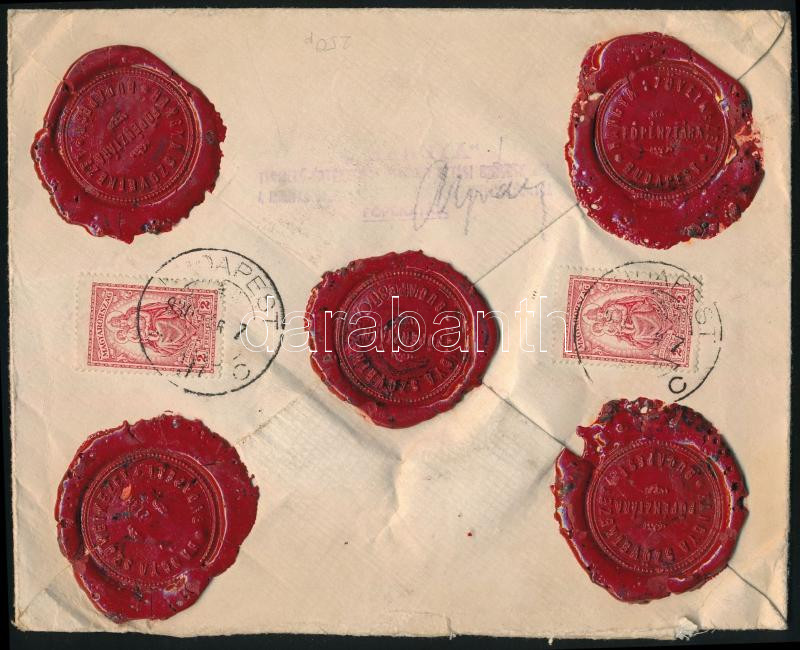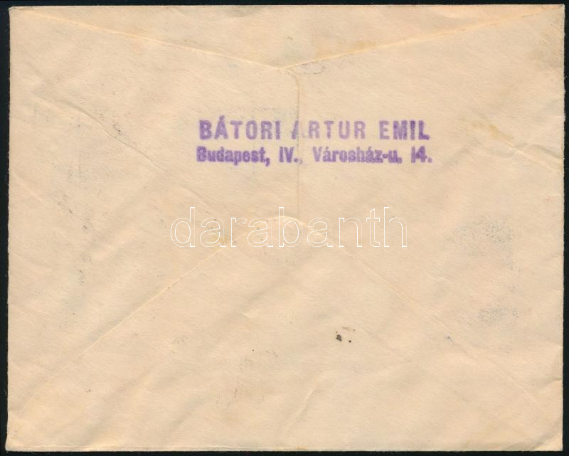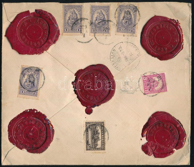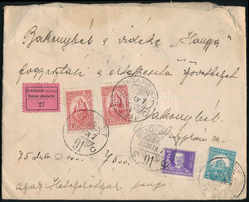 1930 Értéklevél 8,18P bérmentesítéssel, köztük Keskeny Madonna 4 x 2P is, "BUDAPEST" - Bakonybél / Insured cover with 8,18P franking including 4 x Mi 428, "BUDAPEST" (Image)(Image 1)