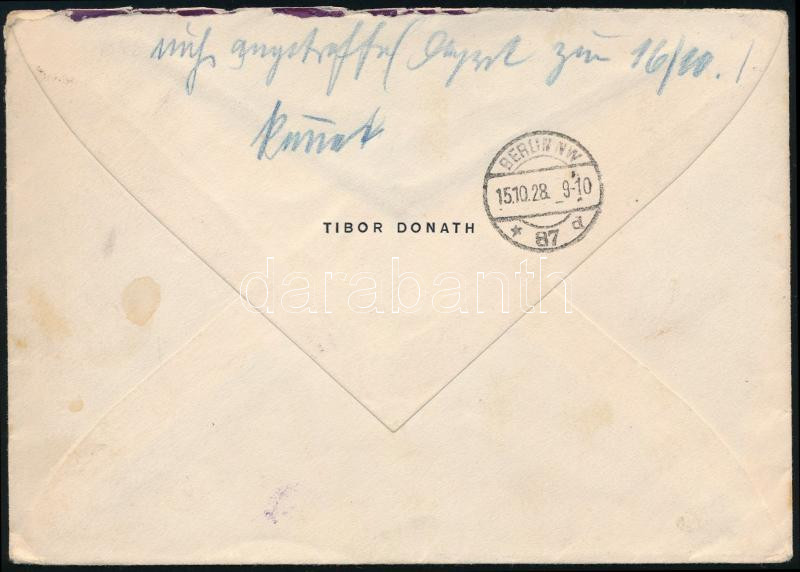 1928 Ajánlott levél Berlinbe / Registered cover to Berlin (Image)(Image 1)