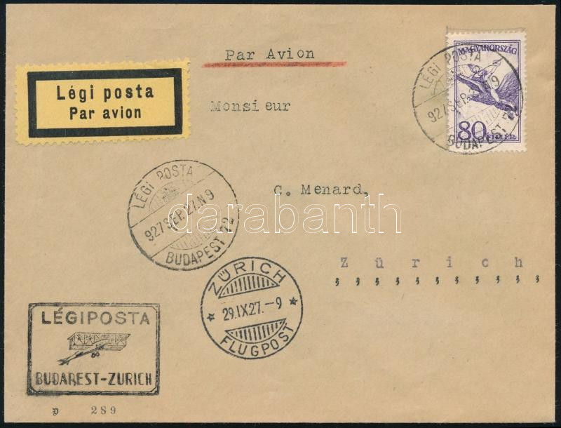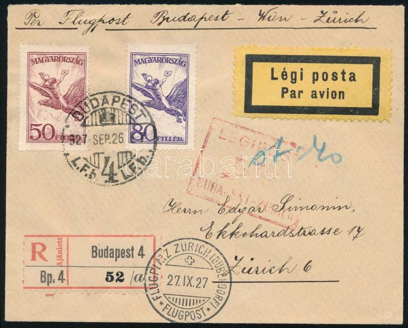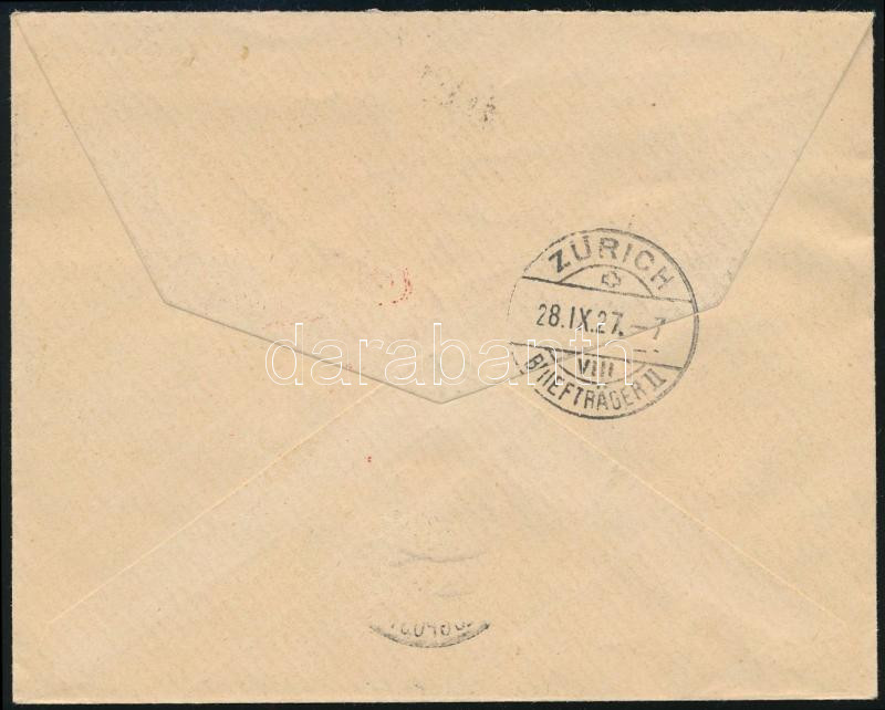 1927 Ajánlott légi levél Zürichbe / Registered airmail cover to Switzerland (Image)(Image 1)