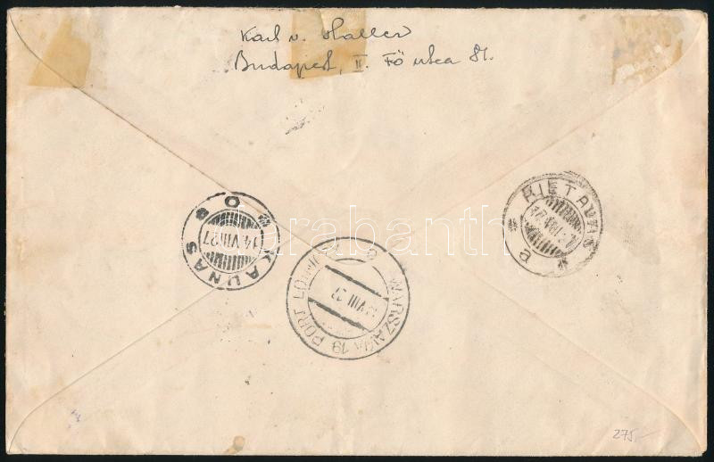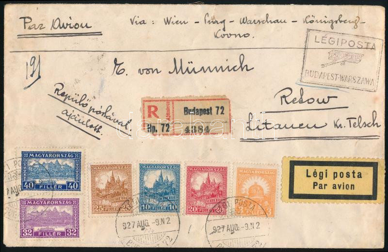1927 Ajánlott légi levél Varsón keresztül Litvániába / Registered airmail cover to Lithuania via Warsaw (Image)(Image 1)