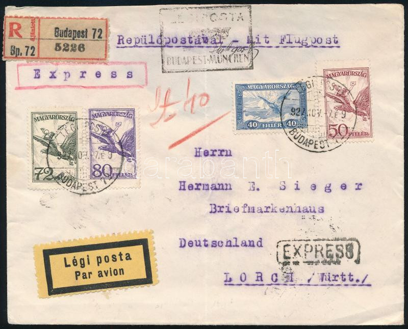 1927 Expressz ajánlott légi levél Németországba / Registered express airmail cover to Germany (Image)(Image 1)
