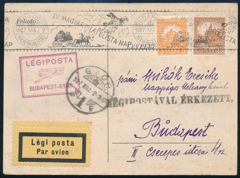 1927 Légi képeslap / Airmail postcard "IV. MAGYAR FILATELISTA NAP" (Image)(Image 1)