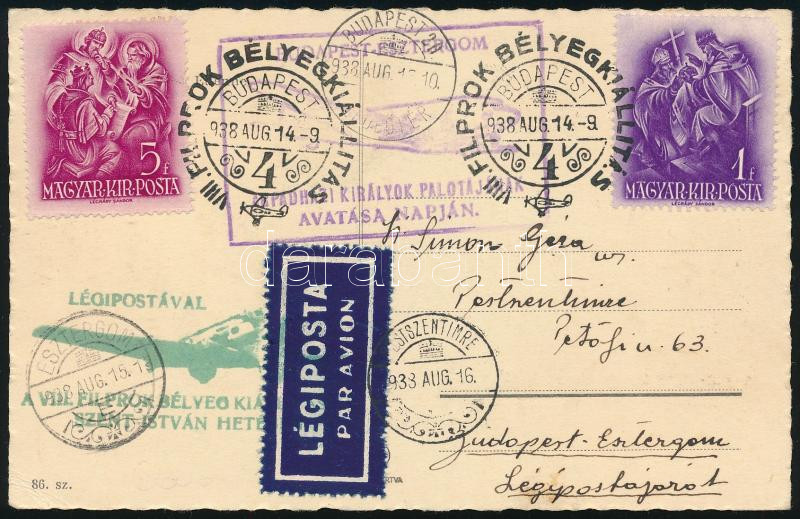 1938 Légi képeslap / Airmail postcard "VIII. FILPROK BÉLYEGKIÁLLÍTÁS" (Image)(Image 1)