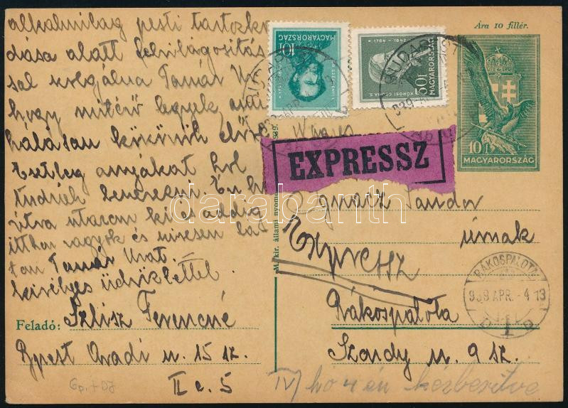 1939 Expressz levelezőlap díjkiegészítéssel / Express cover (Image)(Image 1)