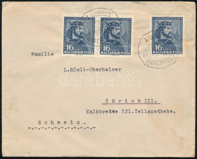 1938 Levél Svájcba / Cover to Switzerland "A SZENT JOBB ORSZÁGJÁRÁSA SOPRON" (Image)(Image 1)