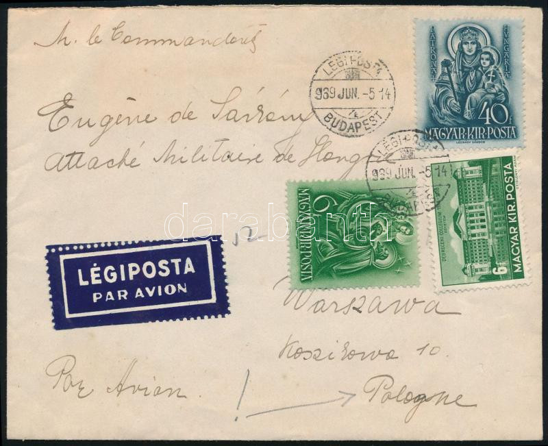 1939 Légi levél Lengyelországba / Airmail cover to Poland (Image)(Image 1)