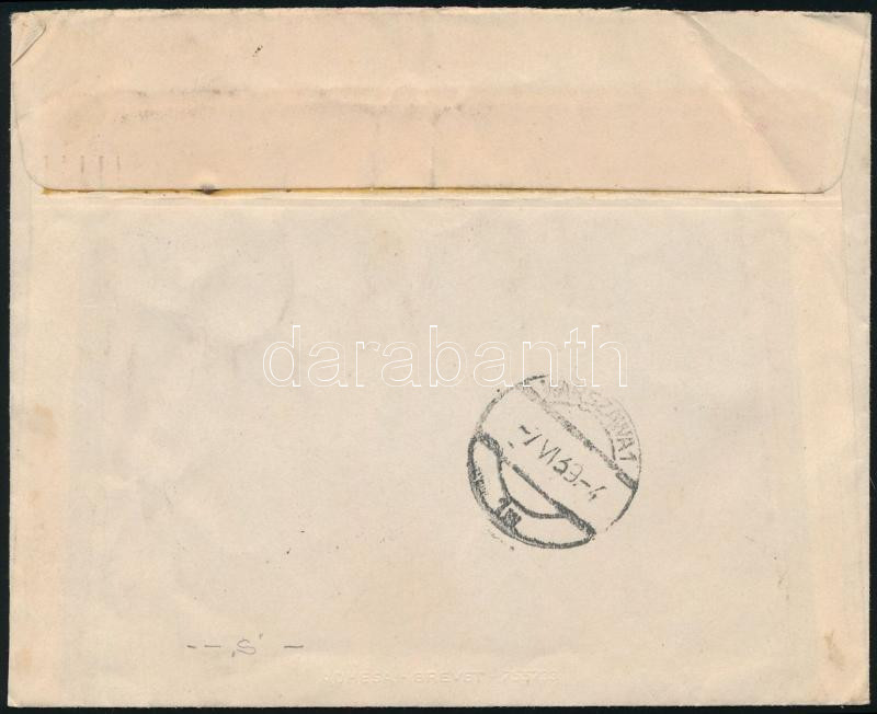 1938 Debrecen sor ajánlott levélen Budapestről Lentibe / Mi 585-590 on registered cover (Image)(Image 1)