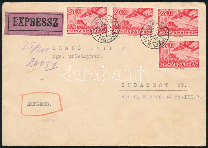 1937 Expressz levél "ESZTERGOM" - Budapest / Express cover (Image)(Image 1)