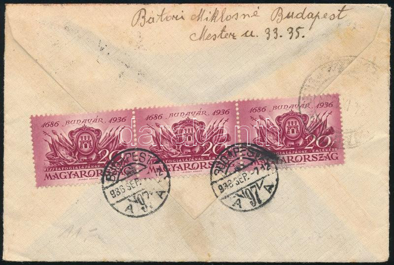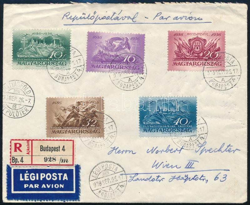 1936 Budavár sor ajánlott légi levélen Bécsbe / Mi 538-542 on registered airmail cover to Vienna (Image)(Image 1)